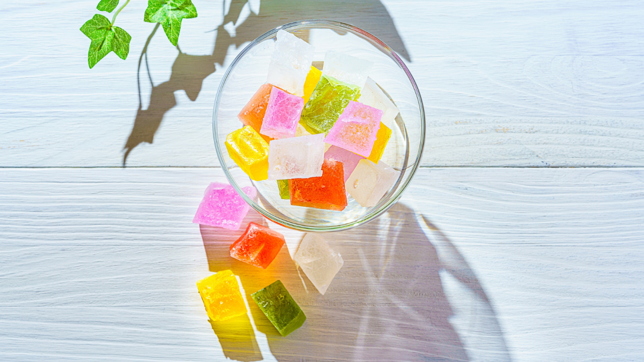 例えば「透明でぷるぷるのフルーツゼリー」が目的なら、寒天やアガーが素直に固まってくれます。