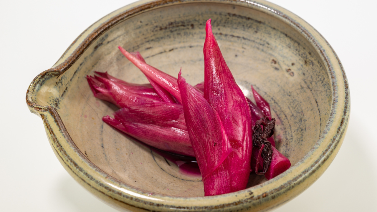 みょうがの彩りが欲しいなら、しば漬けがかなり優秀です。赤しその色、きゅうりやなすの食感、そしてほどよい酸味が、みょうがの「薬味としての仕事」をまとめて肩代わりしてくれます。みょうがの代用で意外と見落とされがちなのが彩りで、見た目が整うだけで「ちゃんと薬味がある」感が出るんですよね。